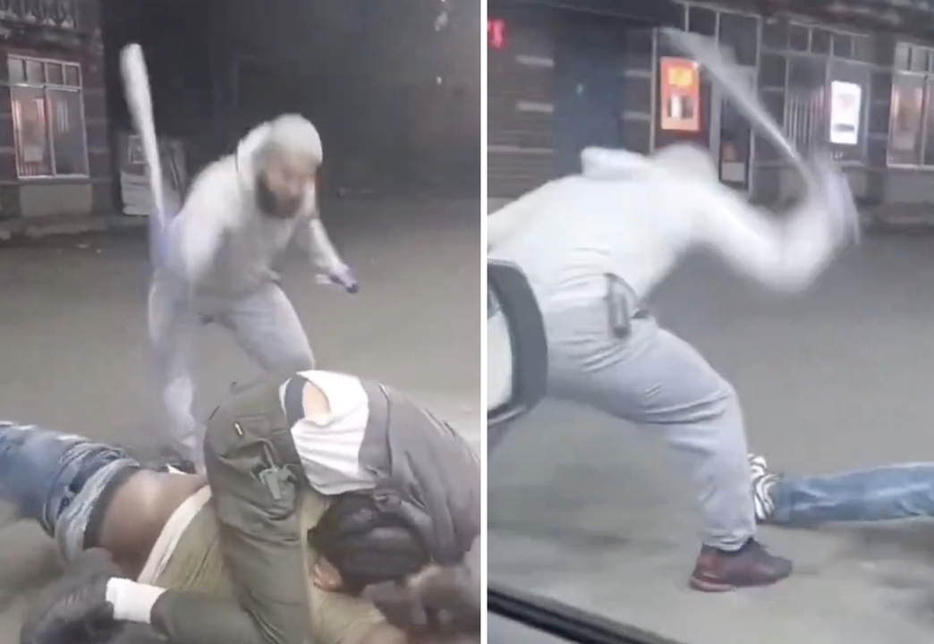 ブチギレ店主が泥棒に反撃、抑えつけられている泥棒を野球バットで殴る