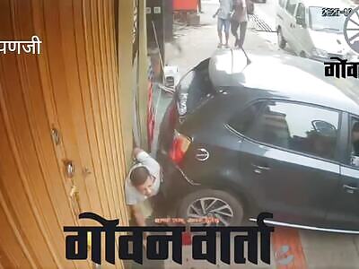 路上で立っていた男性はバックしてきた車に轢かれ、押し潰されました。