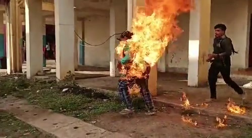 すぐに後悔してそう…自分の体に火を点けて焼身自殺する女