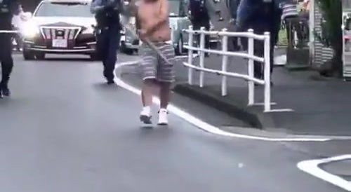 日本の路上で暴れる異常者、警察によって取り押さえられる