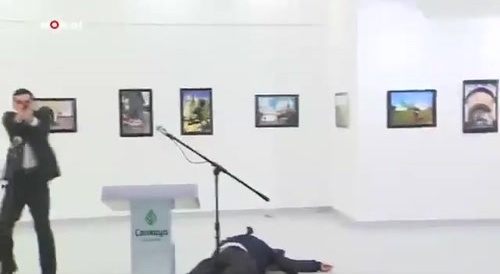 2016年12月にトルコの首都アンカラでロシアの大使が射殺される事件が起き、その瞬間がこちらになります。
