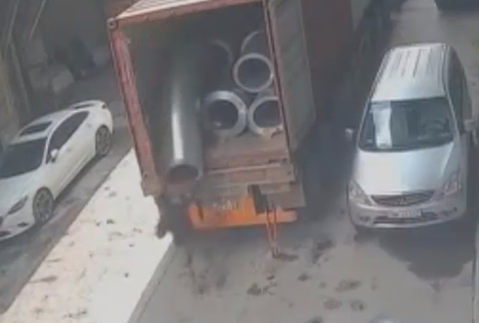 ベトナムで男性がトラックから荷物を下ろそうとしましたがその時に事故が起きました。