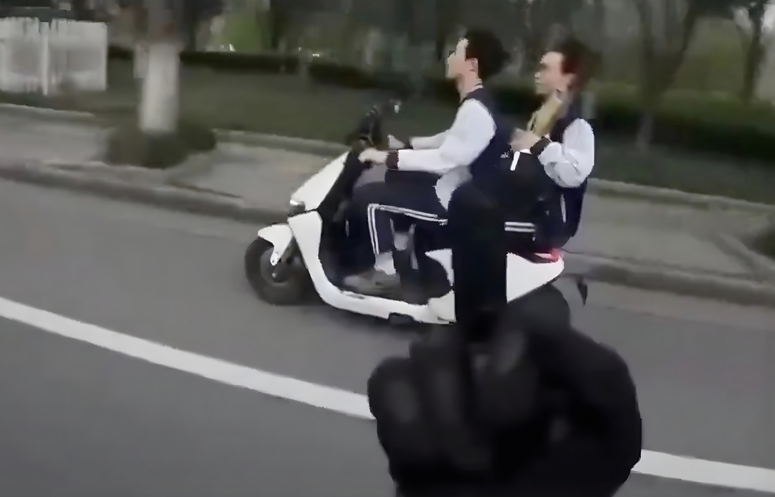 スクーターに乗っていた人たちに向けて中指を立てました。