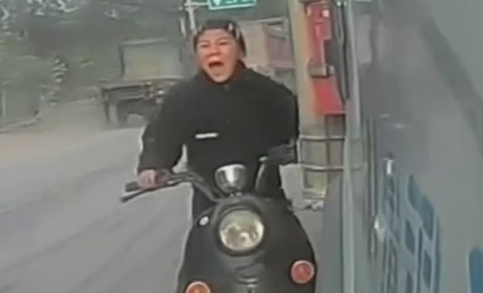中国の道路を2人乗りで走行していたスクーターでしたが無茶な運転により1人が犠牲となりました。