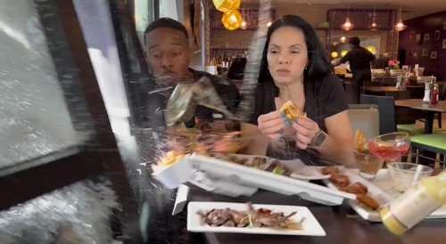 【YouTuberがレストランで食レポ中、ガラスを突き破って車が突っ込む瞬間を捉えた衝撃映像】