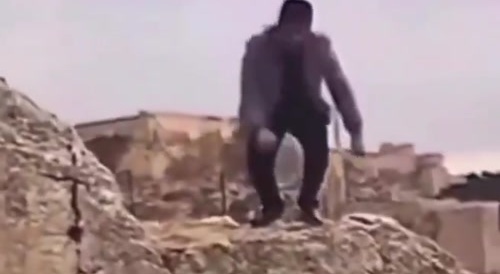 それほど高くない場所からジャンプした男性でしたが着地に失敗しました。