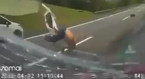 事故を起こした車は、運転手が車から投げ出され、別の車の目の前まで転がってきました。